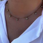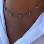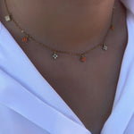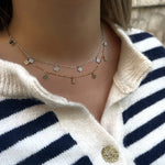 Collier en fines chaînes ajustables orné de petit trèfle à strass.