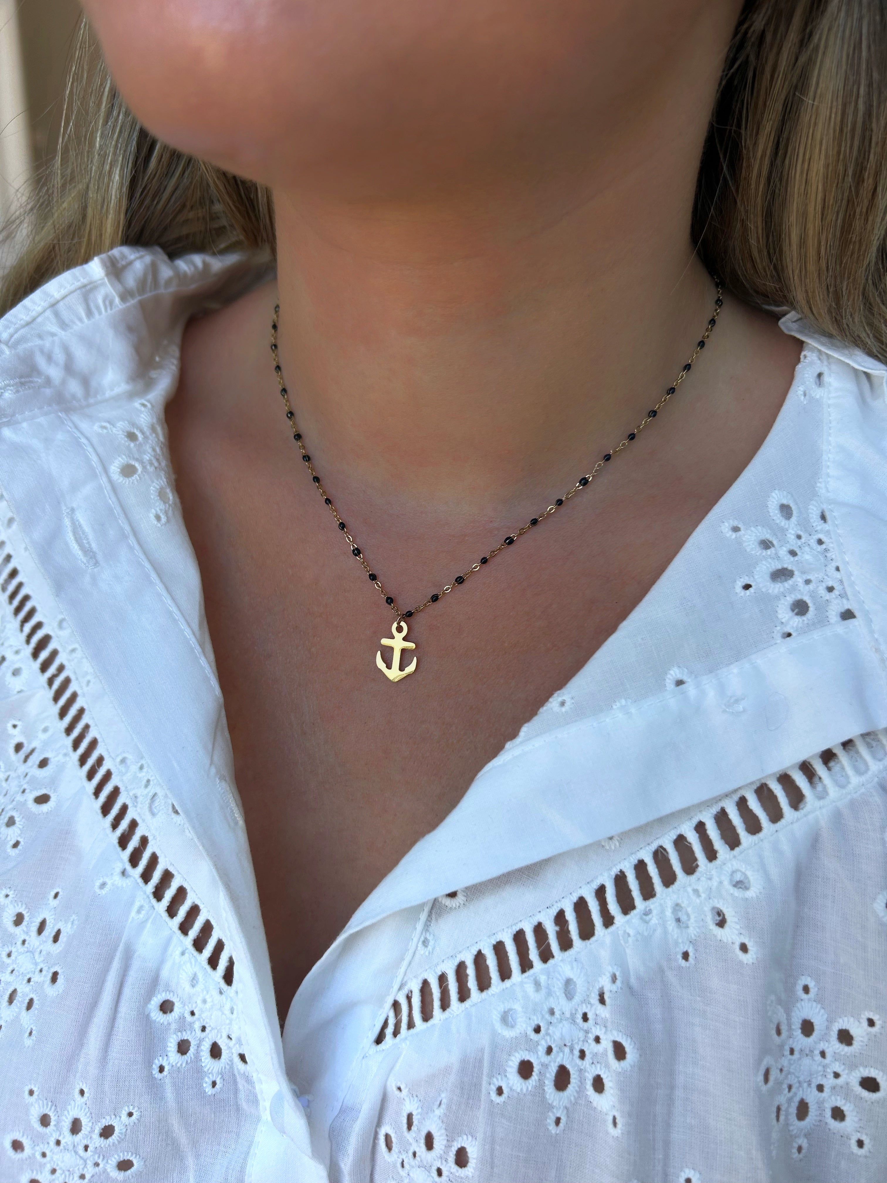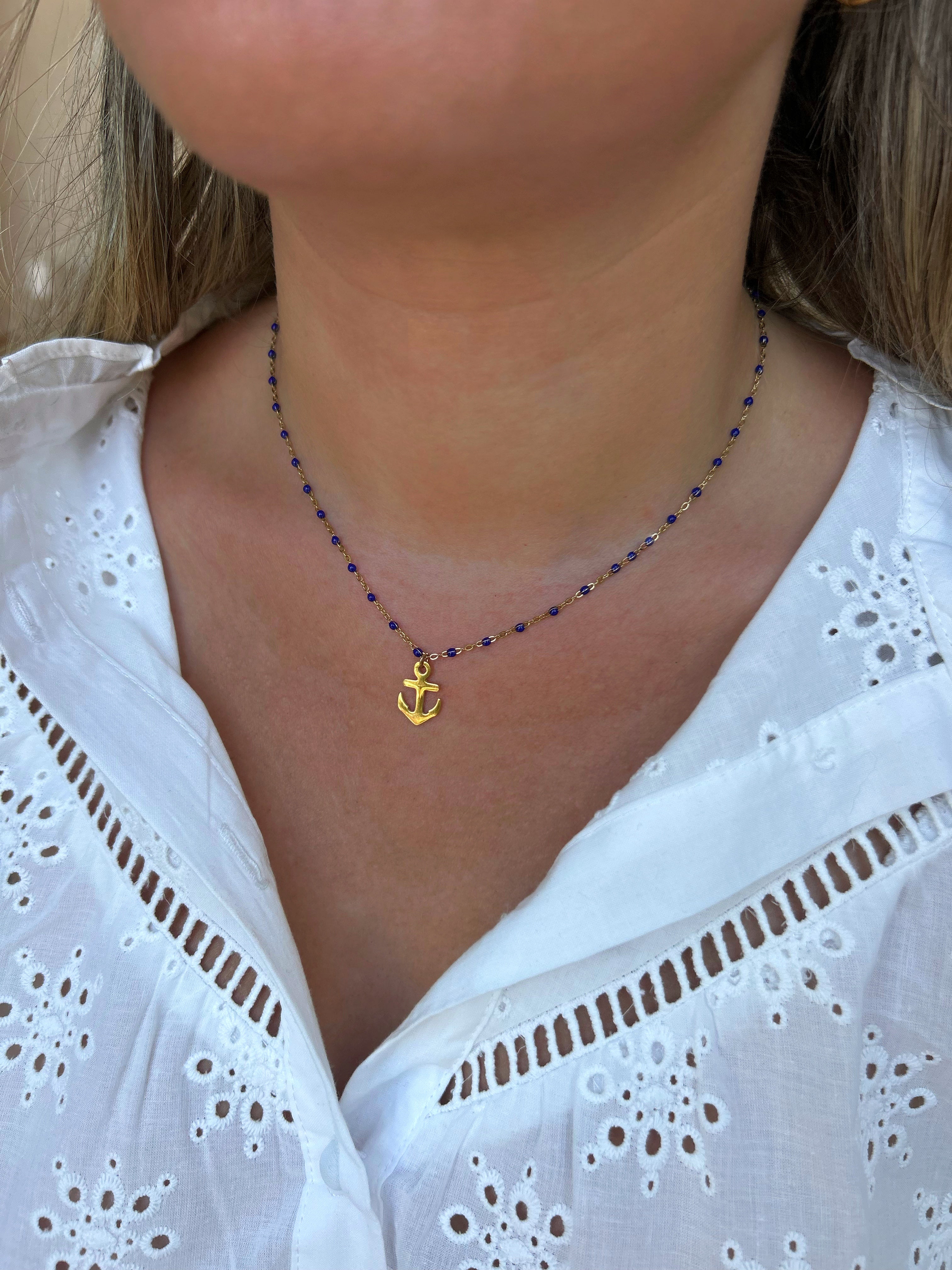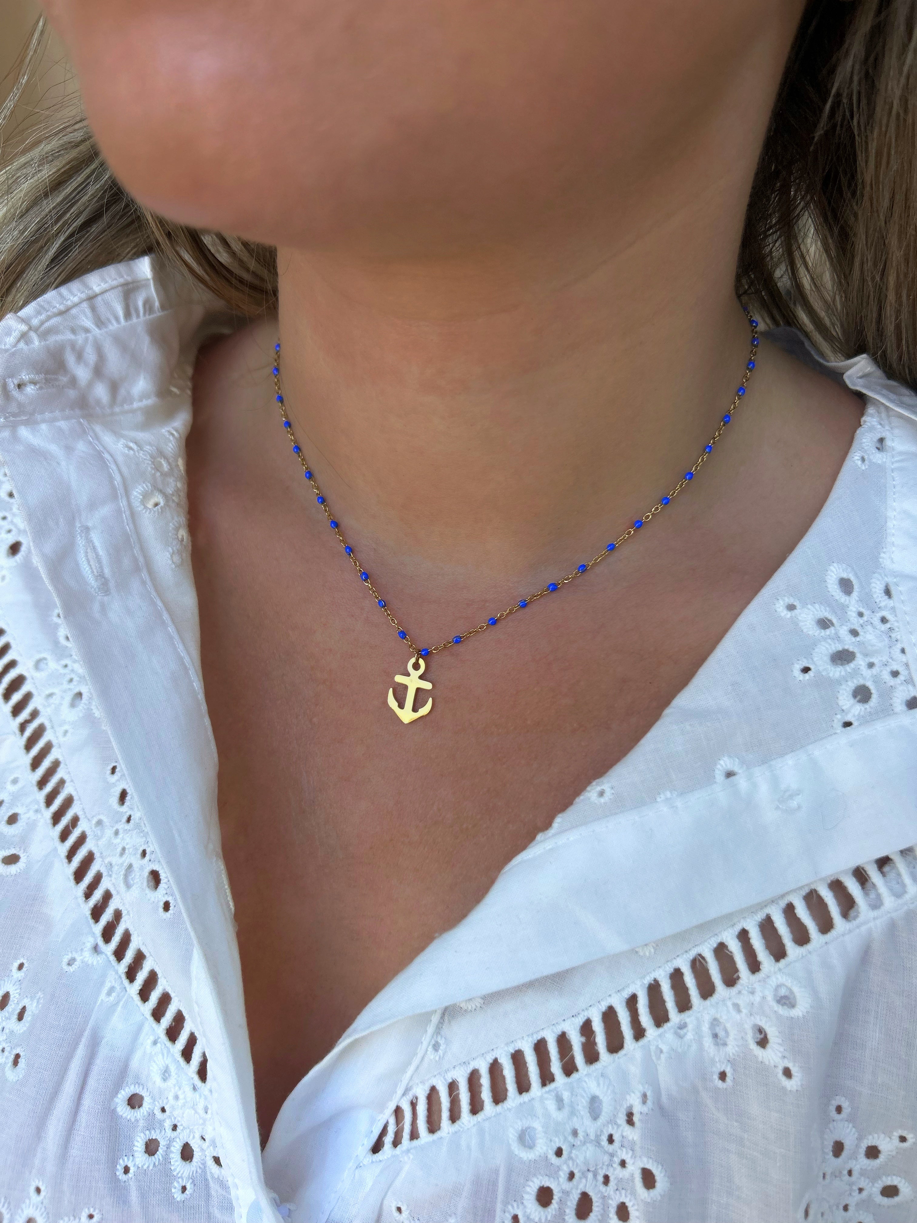 Collier à fines perles colorées ajustable avec un pendentif Encre marine.