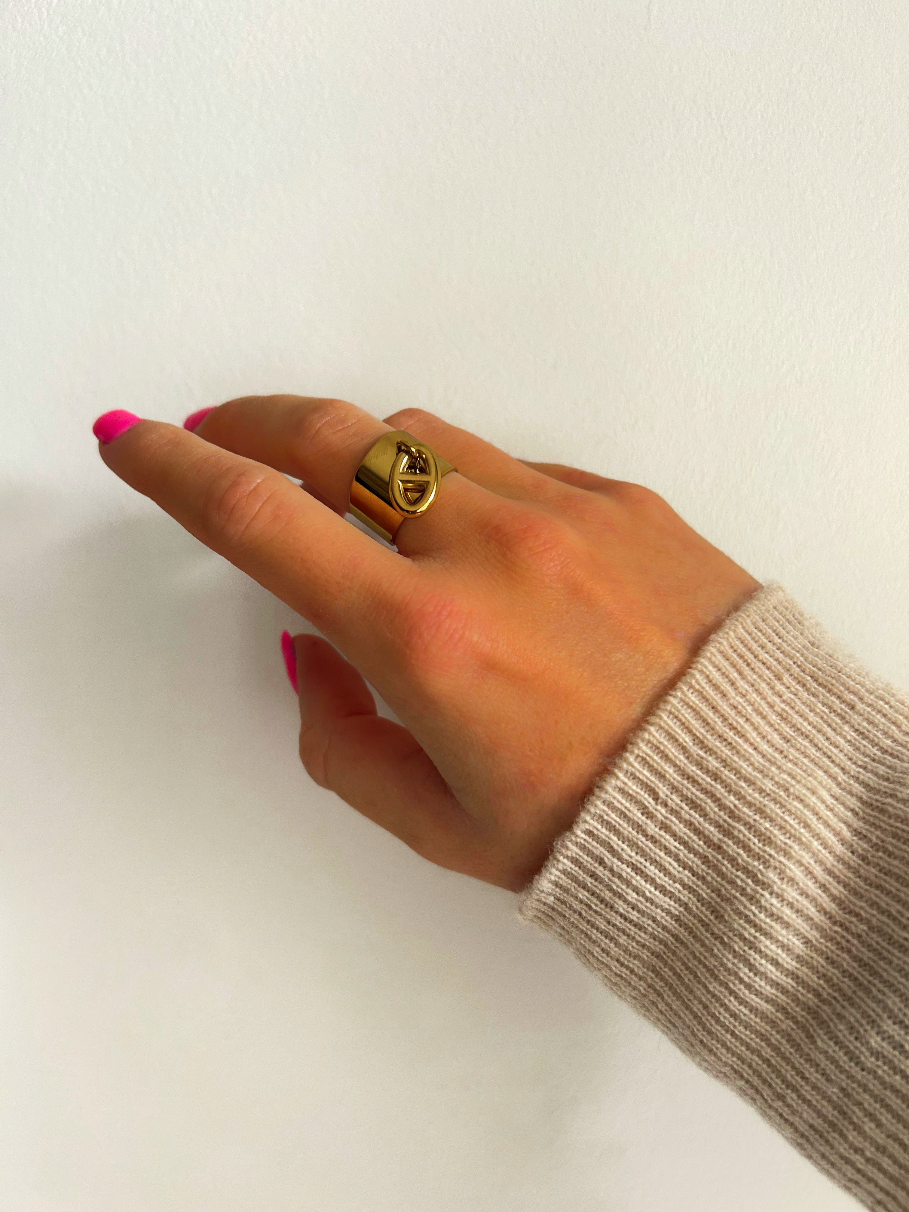 La bague Athena est réglable et en acier inoxydable.