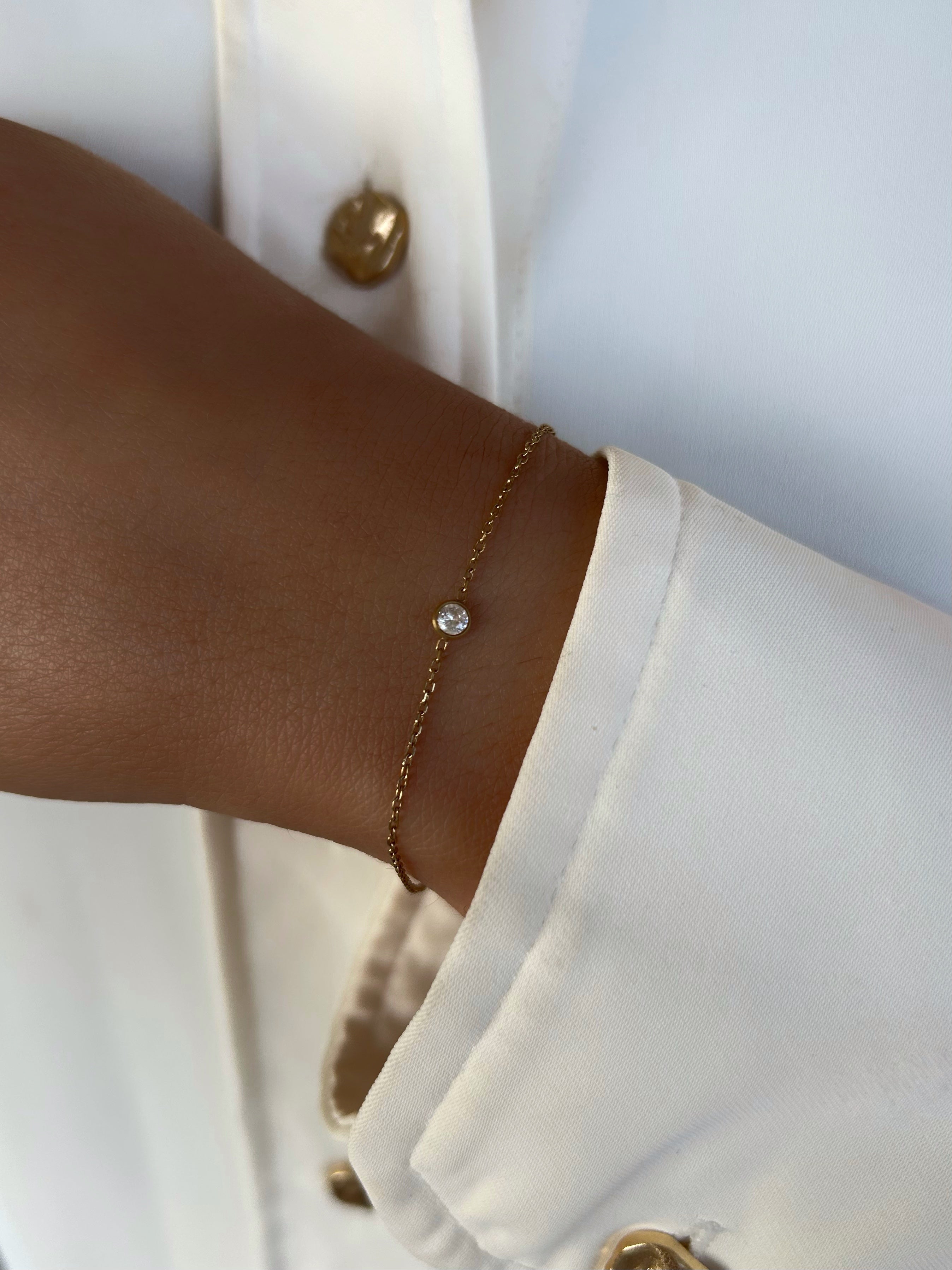 Bracelet en fines chaînes ajustables avec un pendentif Strass.