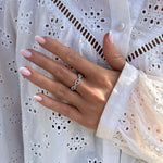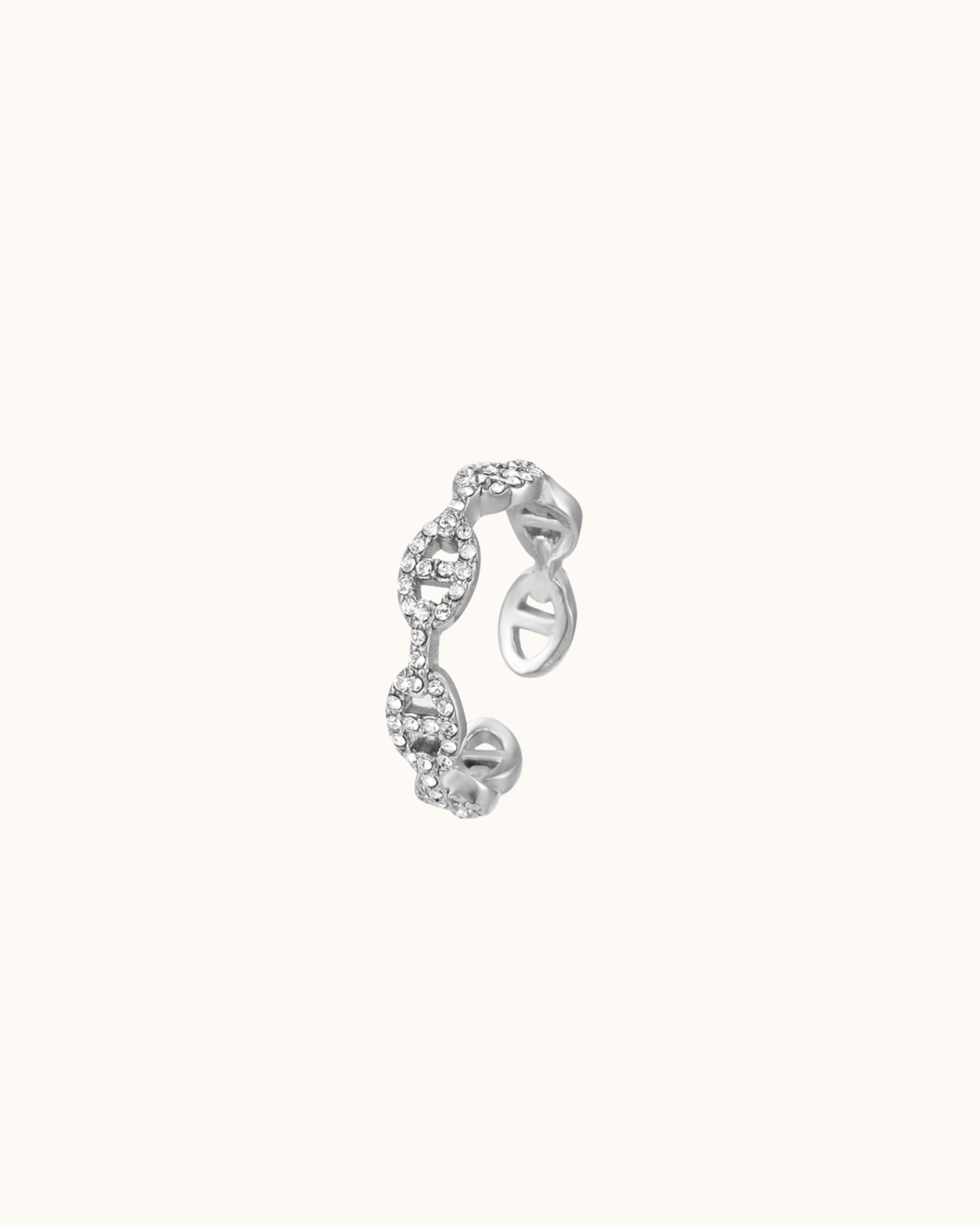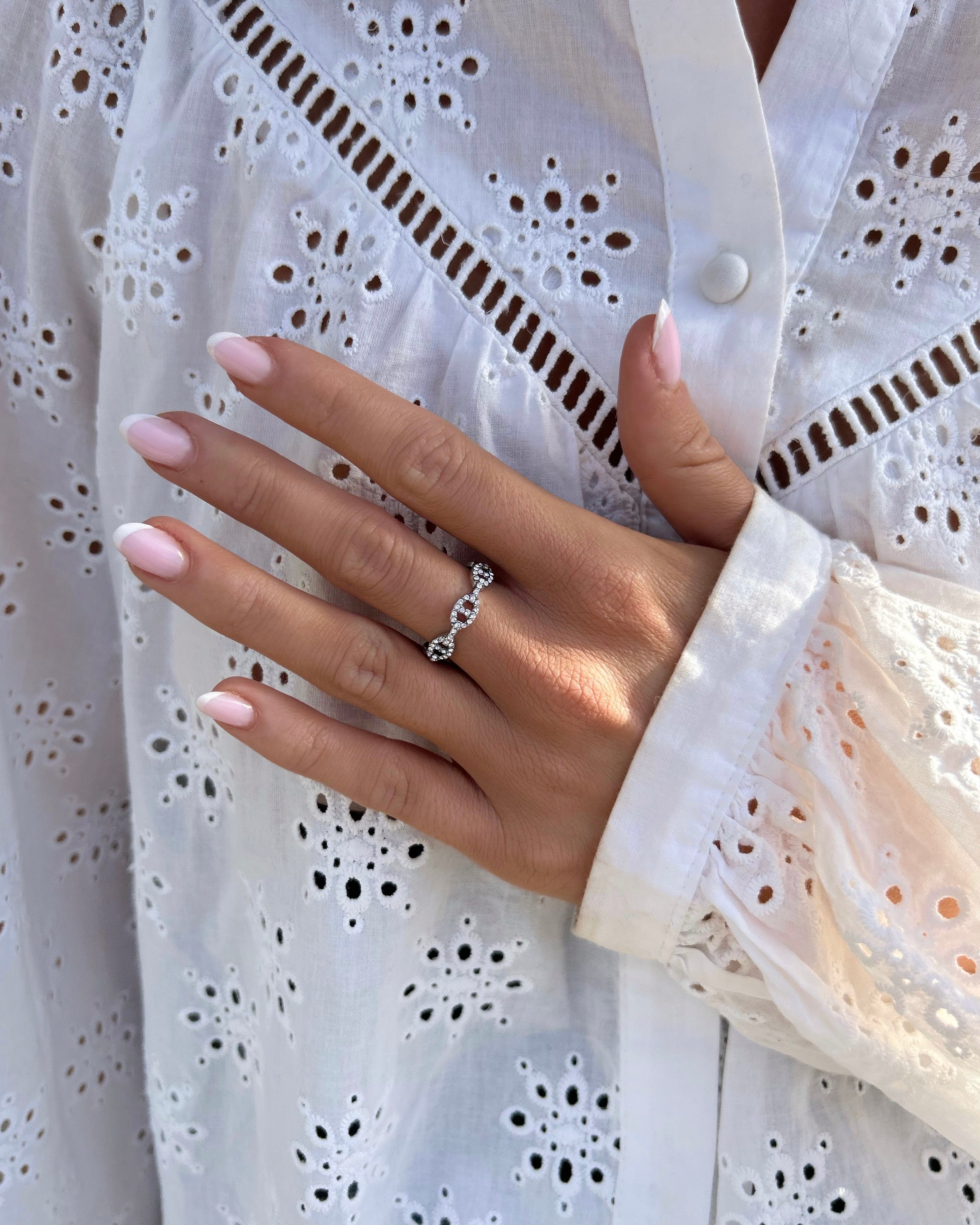 Bague fine en maille marine, un maillon sur deux est serti de strass.