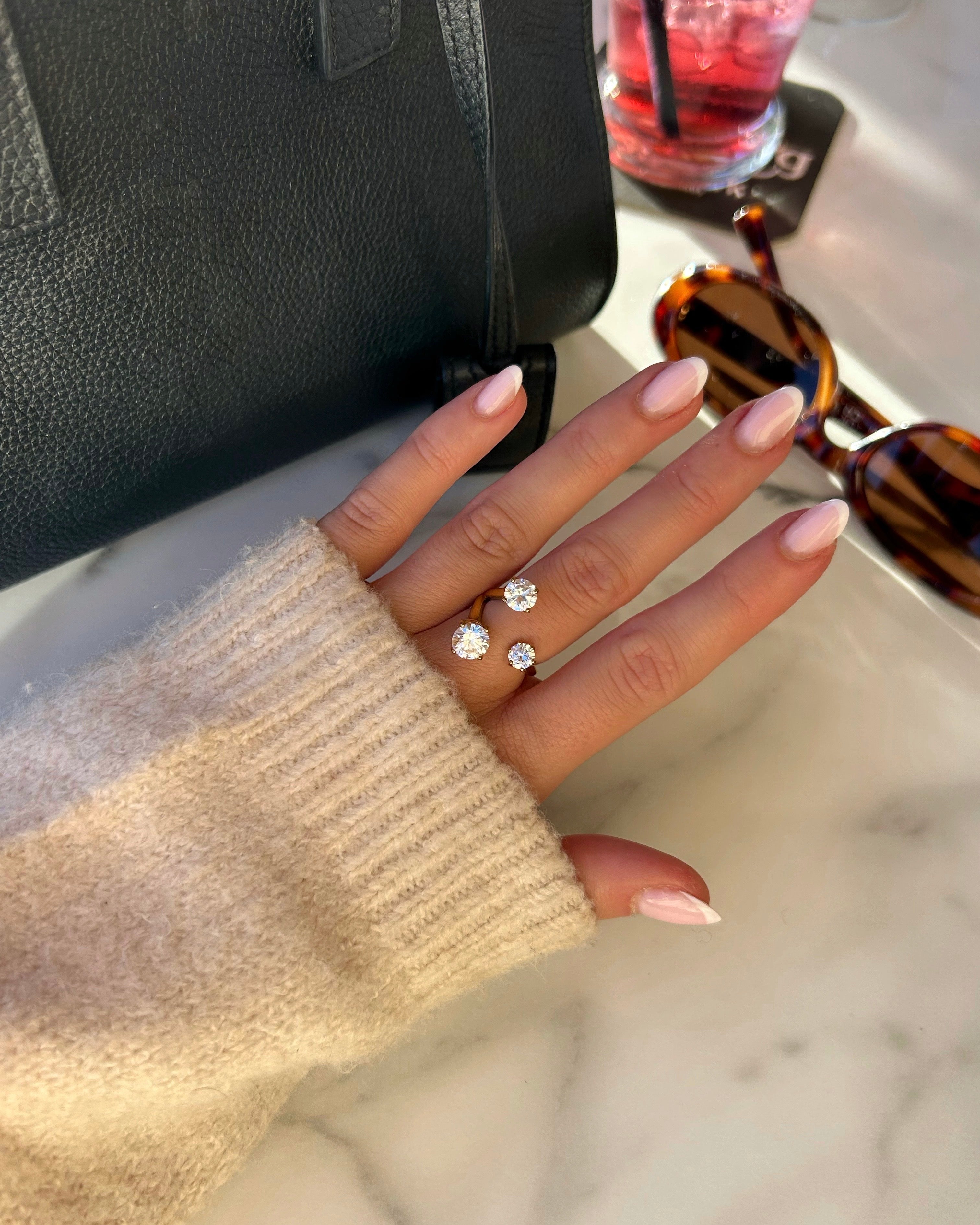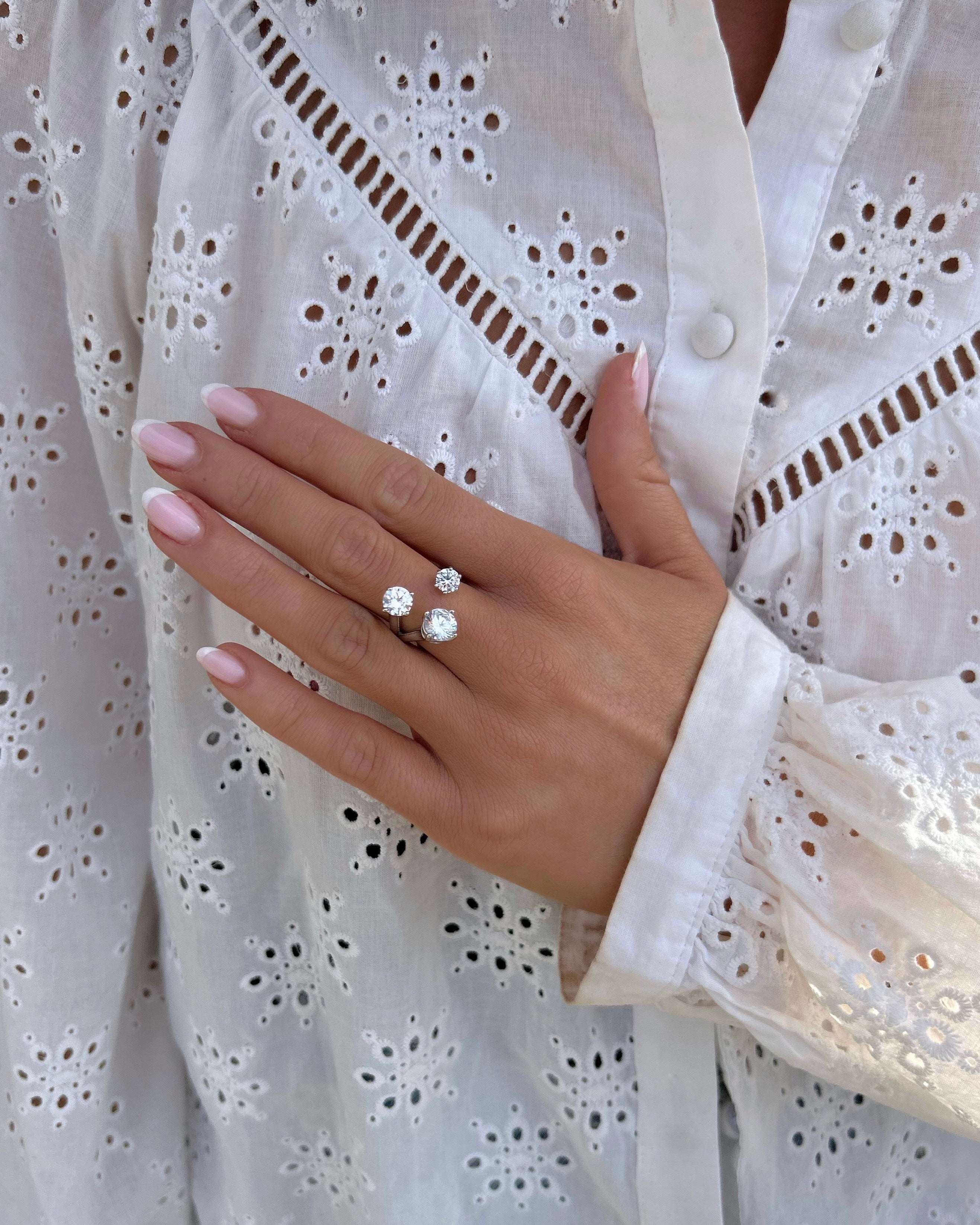 Bague fine ornée de trois strass.