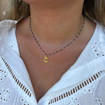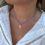 Collier à fines perles colorées ajustable avec un pendentif Encre marine.