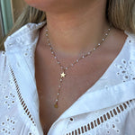 Collier Y à fines perles colorées ajustable avec deux pendentifs Croix.