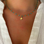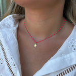 Collier à fines perles colorées ajustable avec un pendentif Étoile.