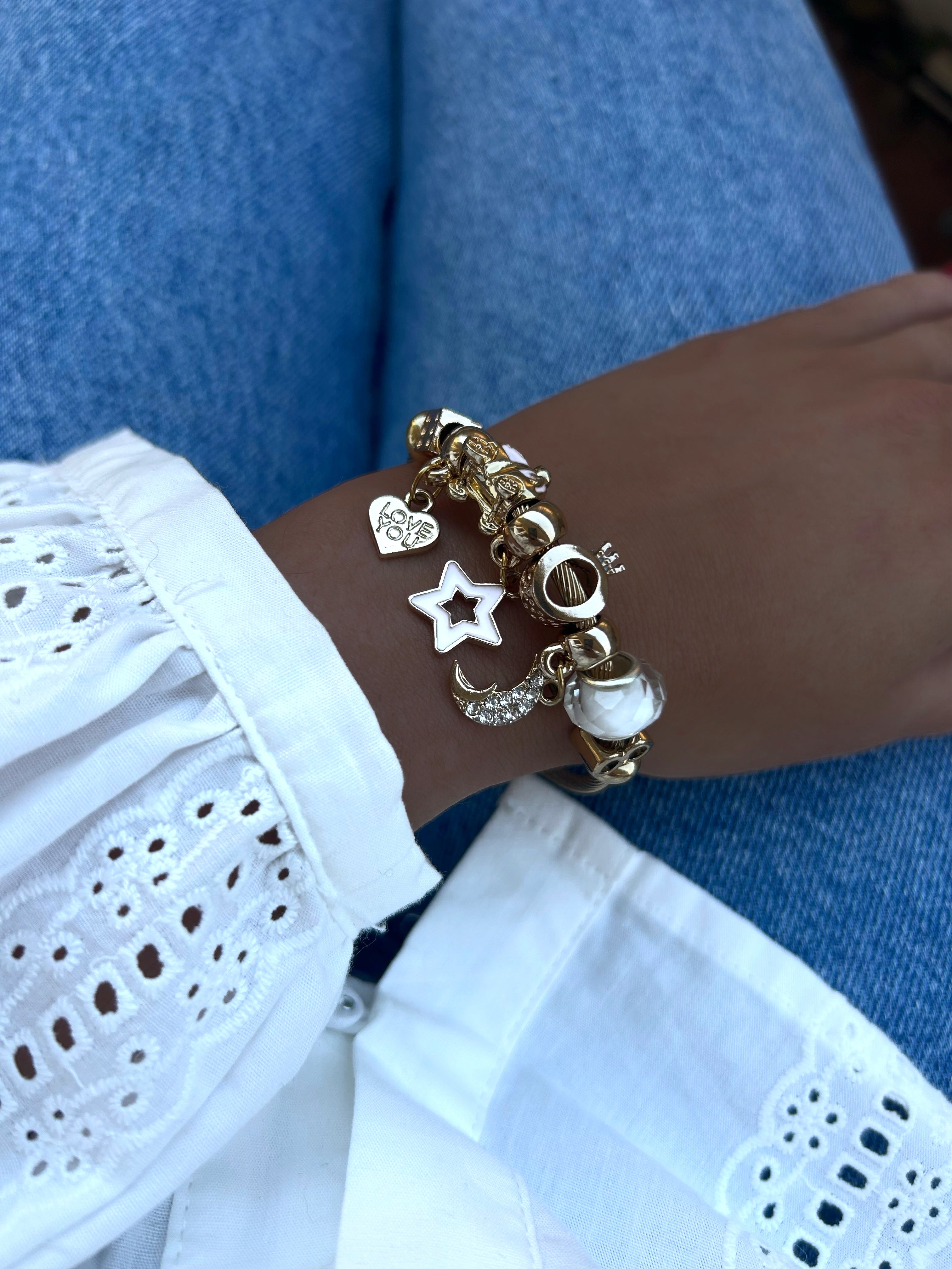 Découvrez notre bracelet charms, alliant élégance et durabilité avec ses nombreuses breloques. Parfait pour toutes les occasions, ce bijou offre une brillance intemporelle et un design raffiné. Confortable et ajustable, il est l'accessoire idéal pour sublimer votre style au quotidien. Optez pour la qualité et l'élégance avec notre bracelet Alya.