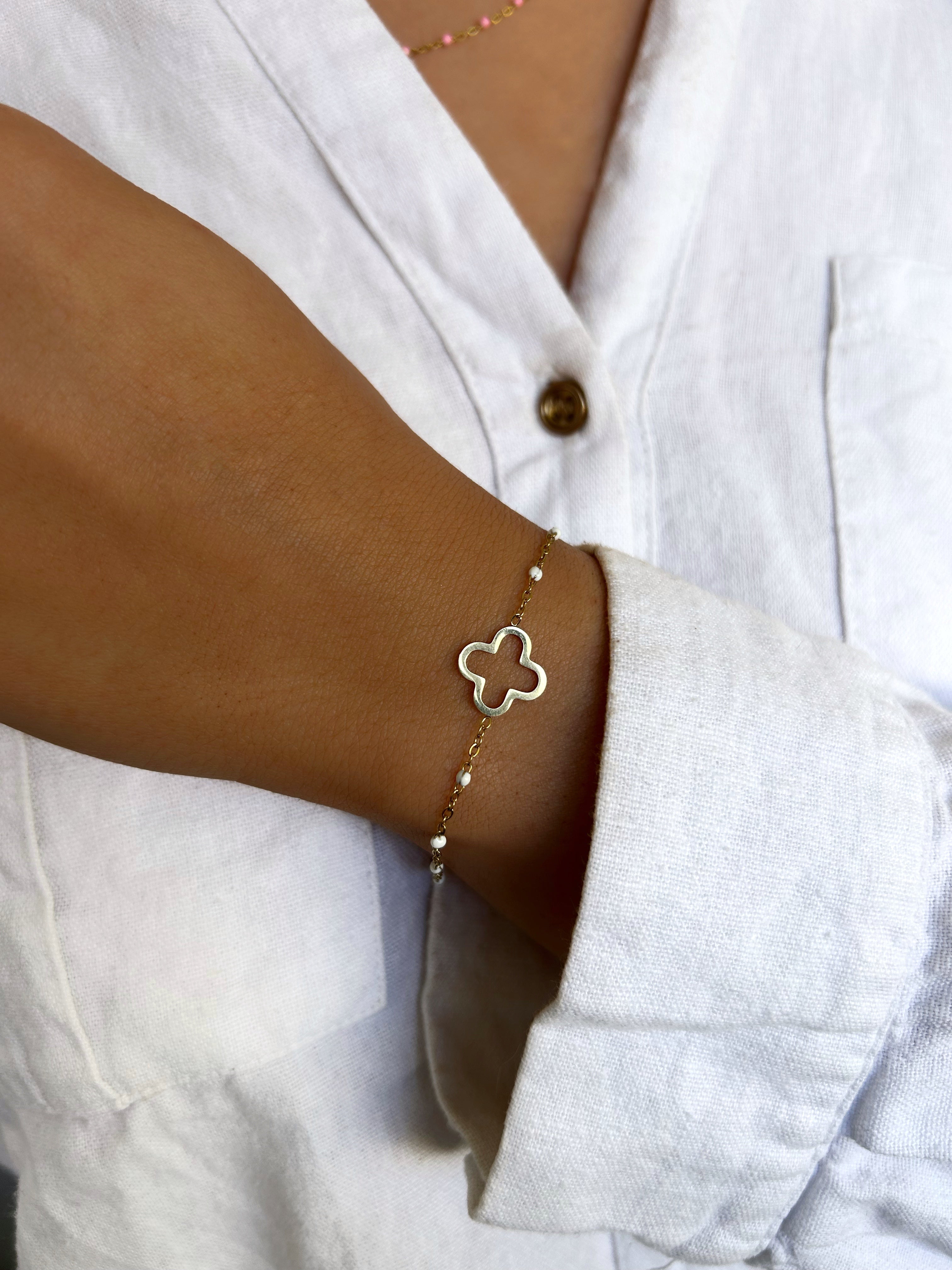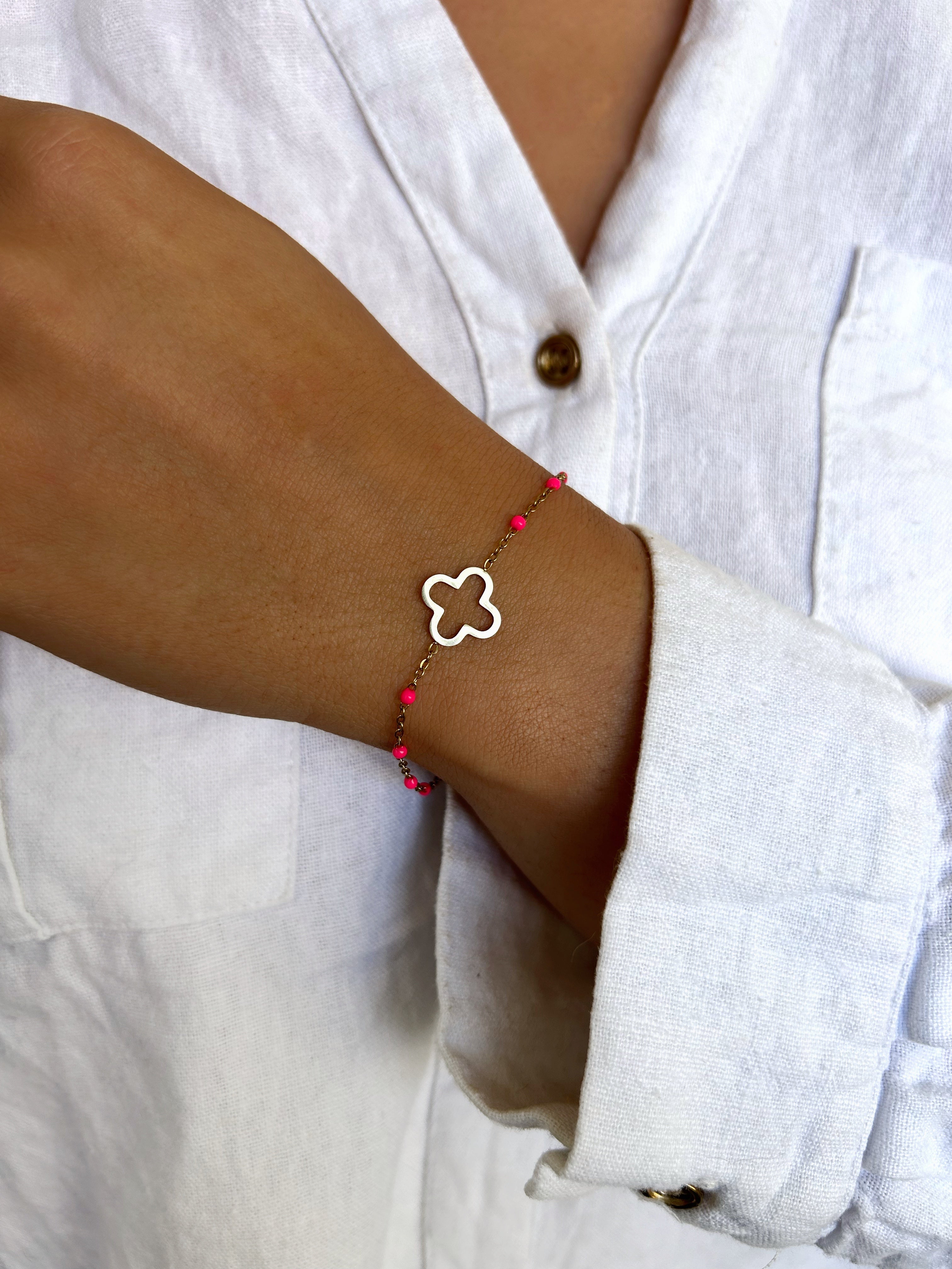 Bracelet à fines perles colorées ajustable avec un pendentif Trèfle.