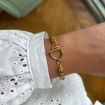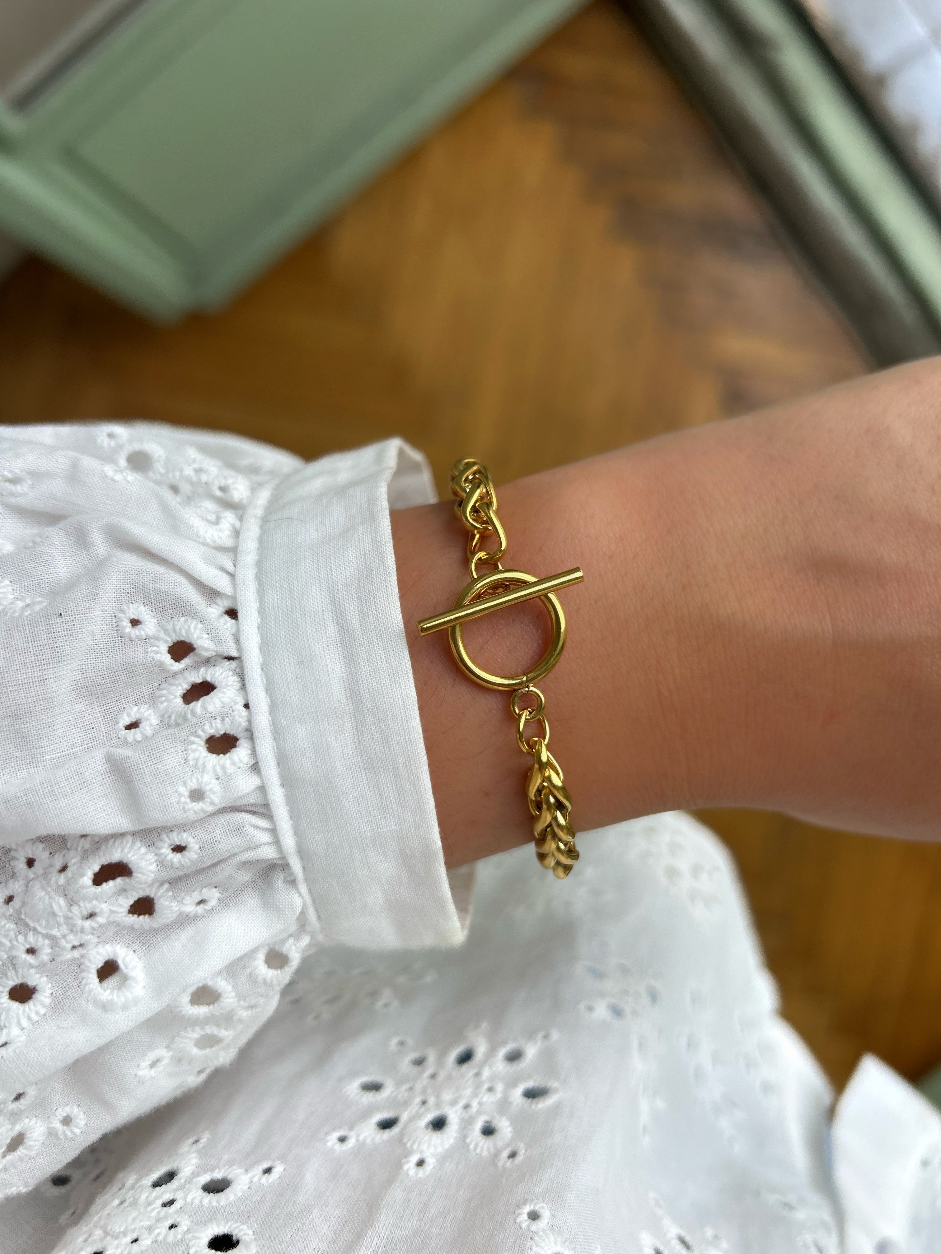 Bracelet en chaîne tressée ajustable doré.