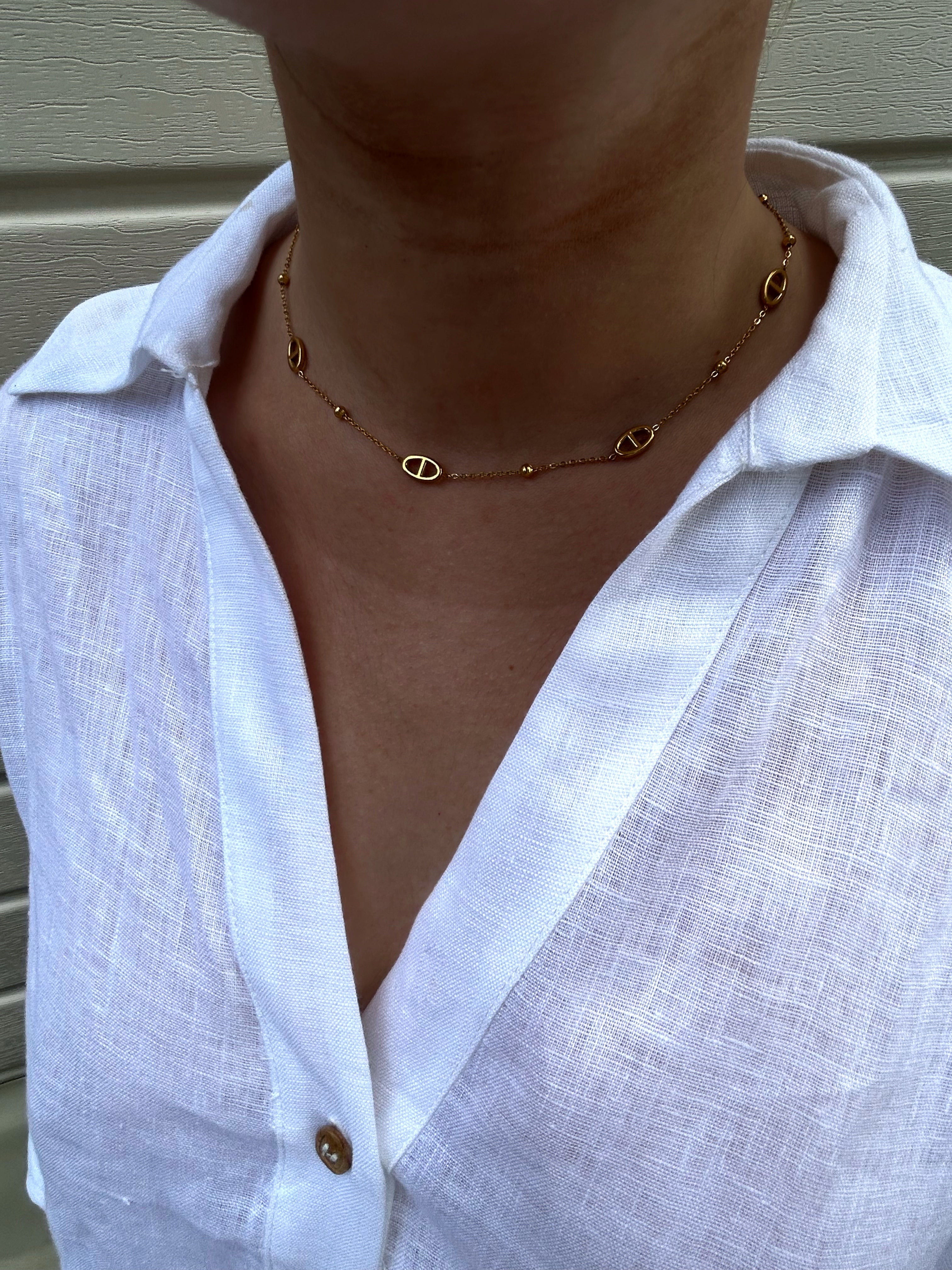 Collier en fines chaînes ajustable avec pendentif Maille marine et strass