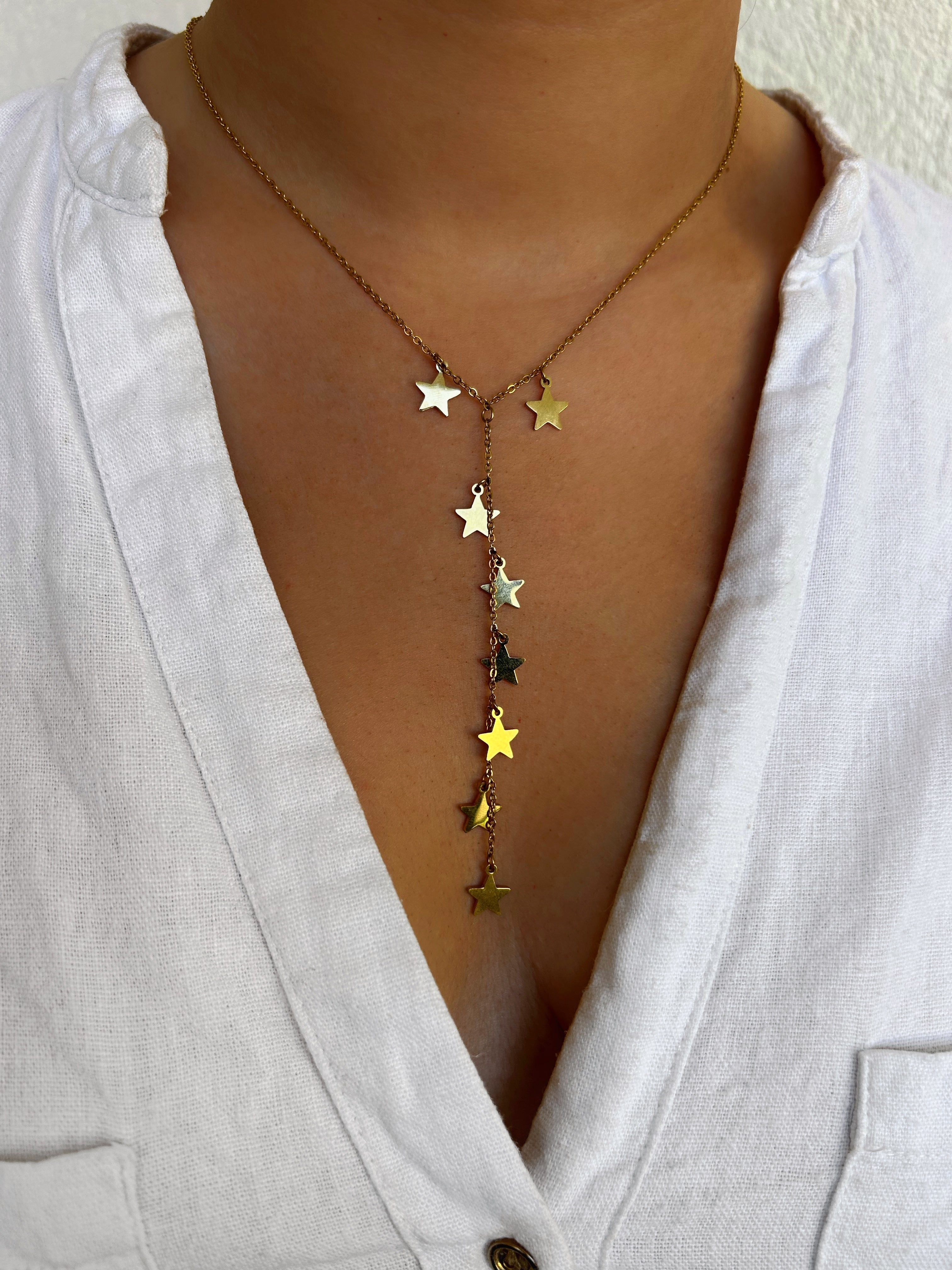 Collier Y en fine chaîne ajustable avec des pendentifs Étoiles.