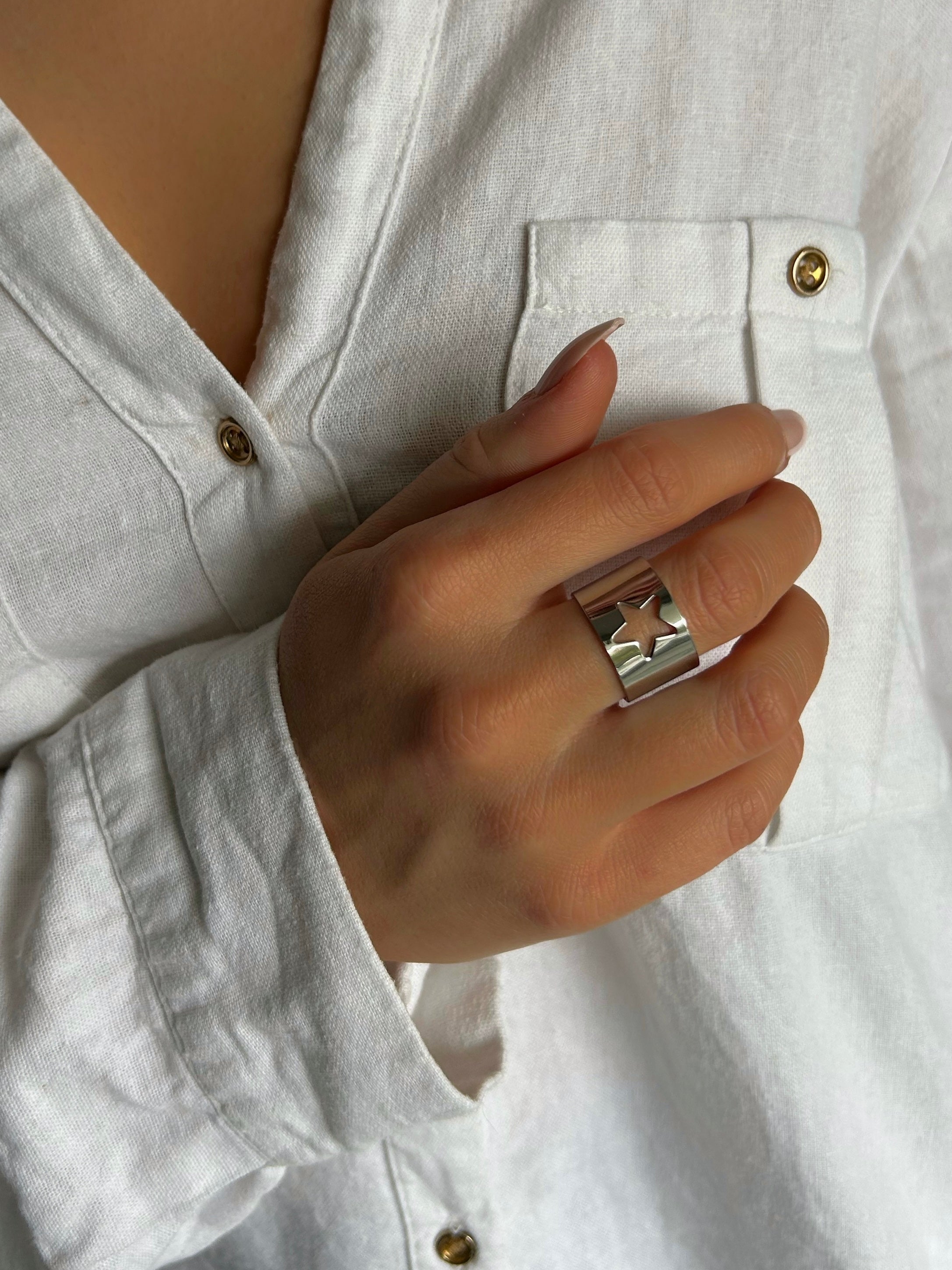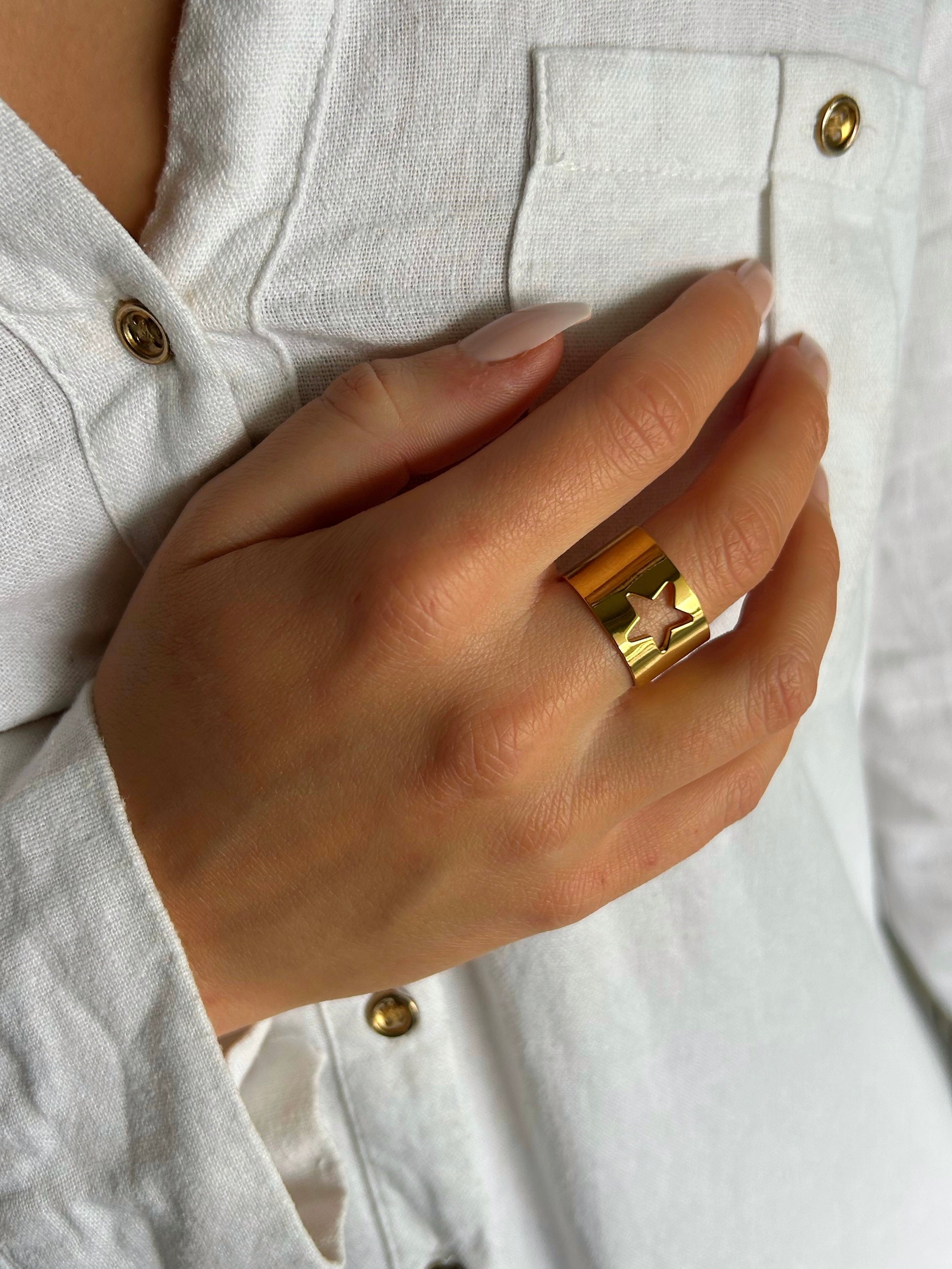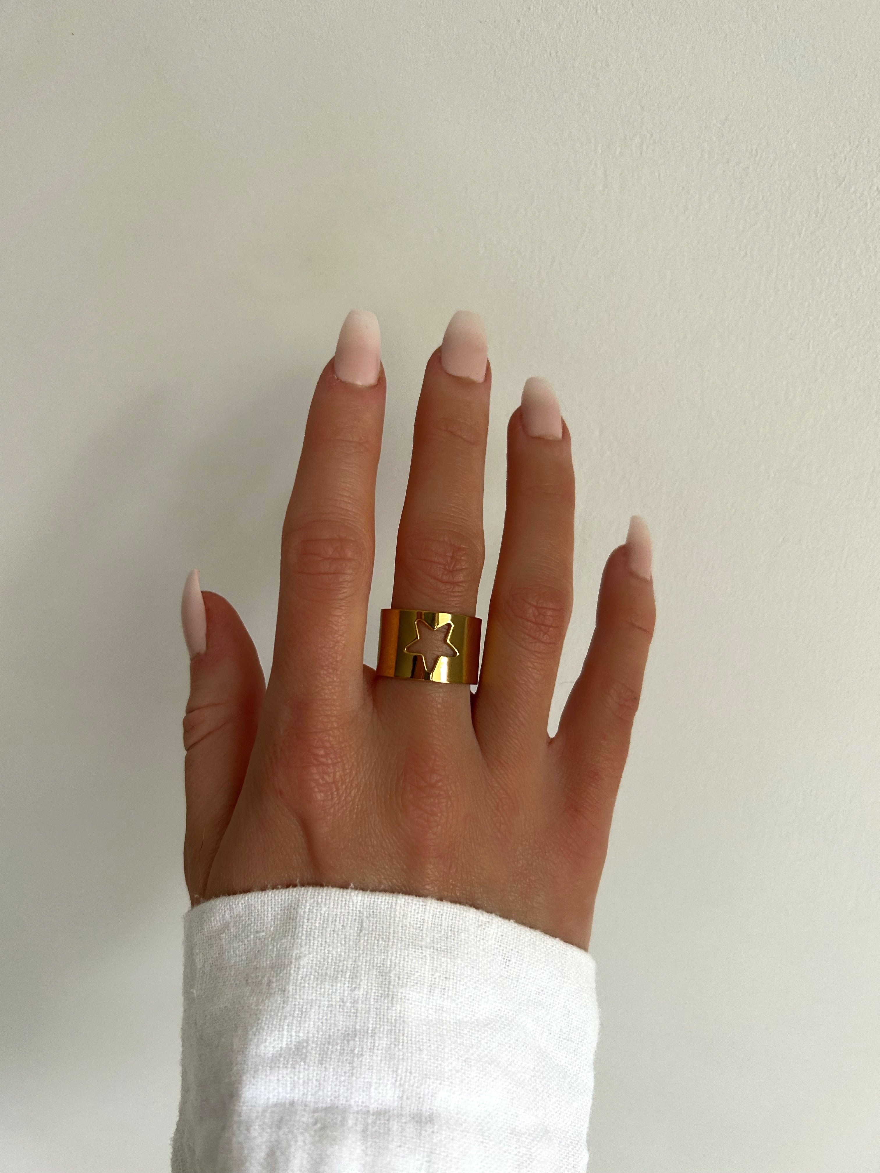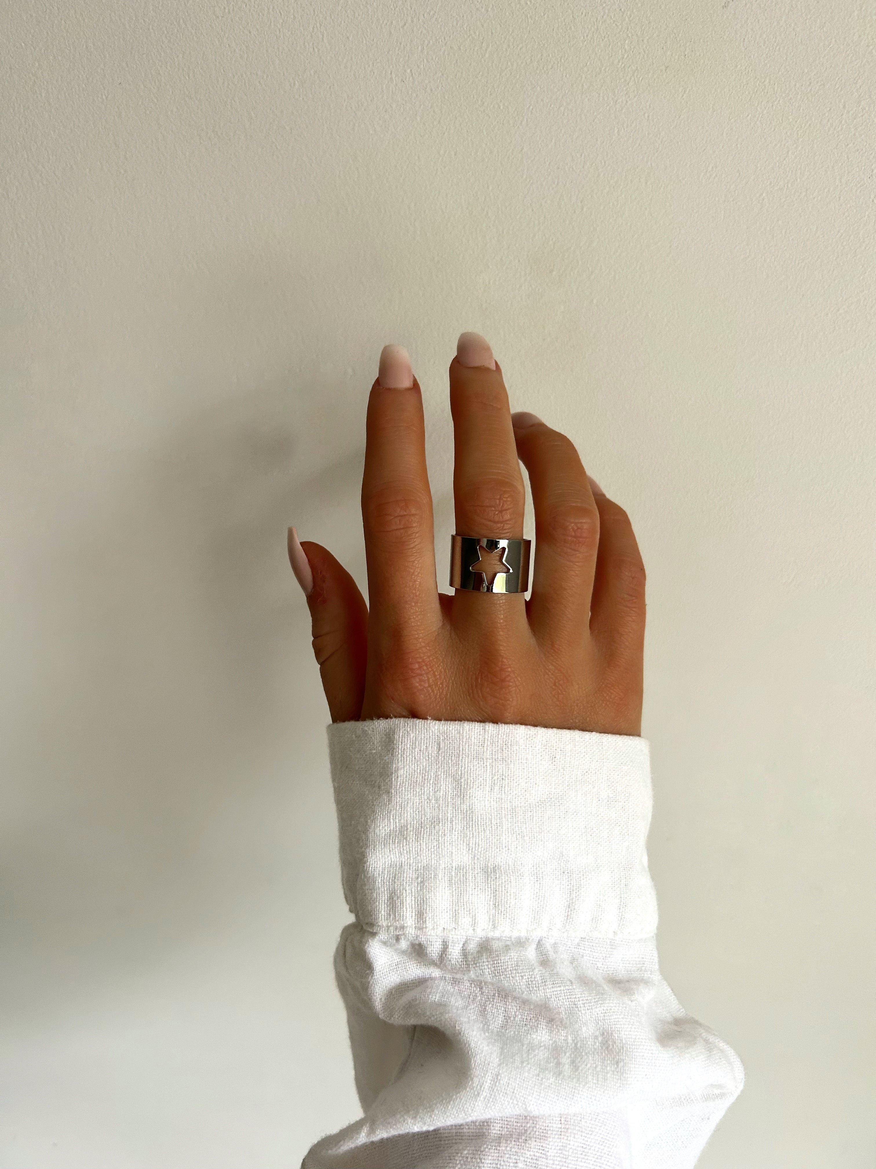 The Vedette ring is adjustable and made of stainless steel.