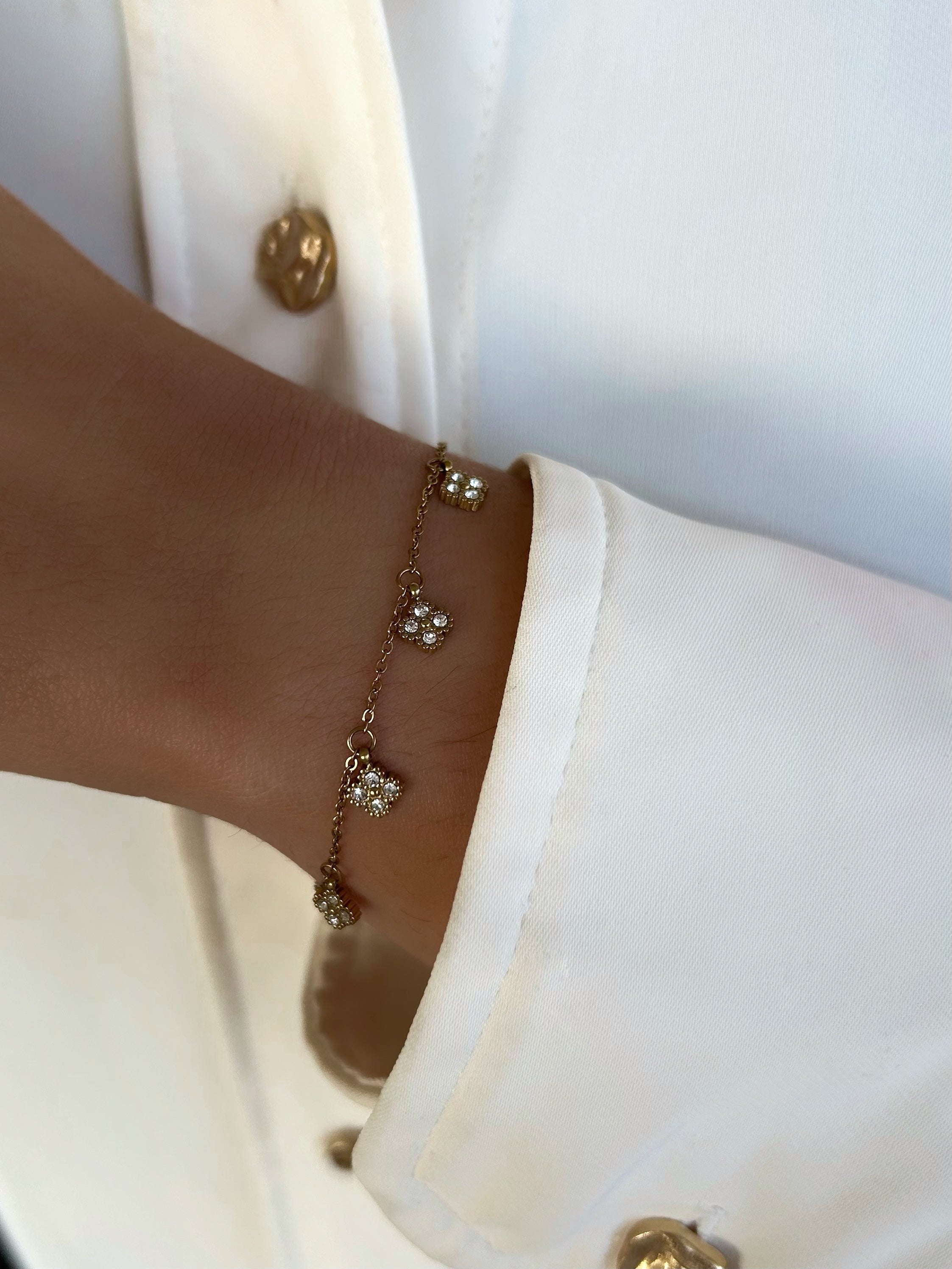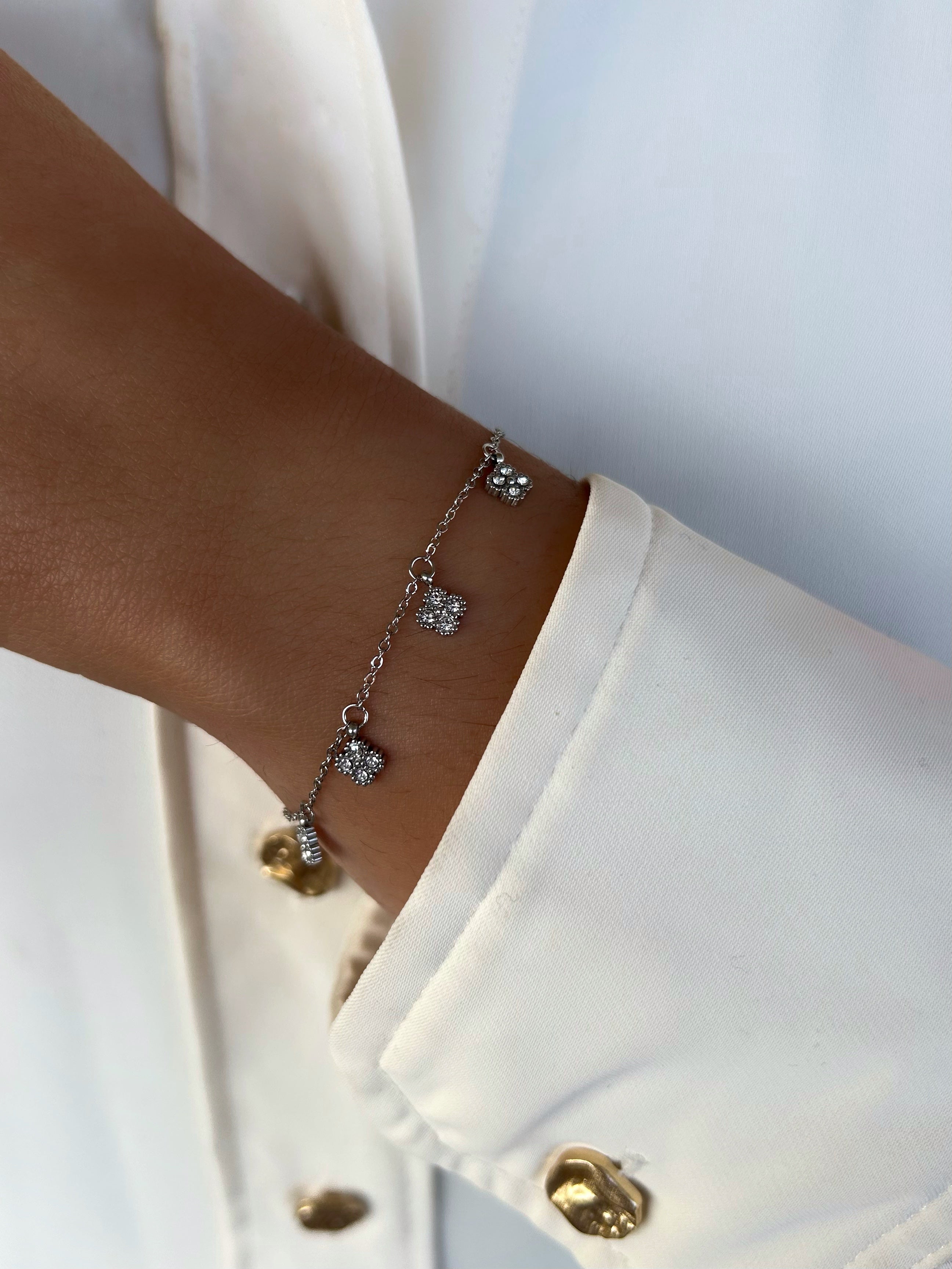 Bracelet in fine adjustable chains decorated with rhinestone clovers