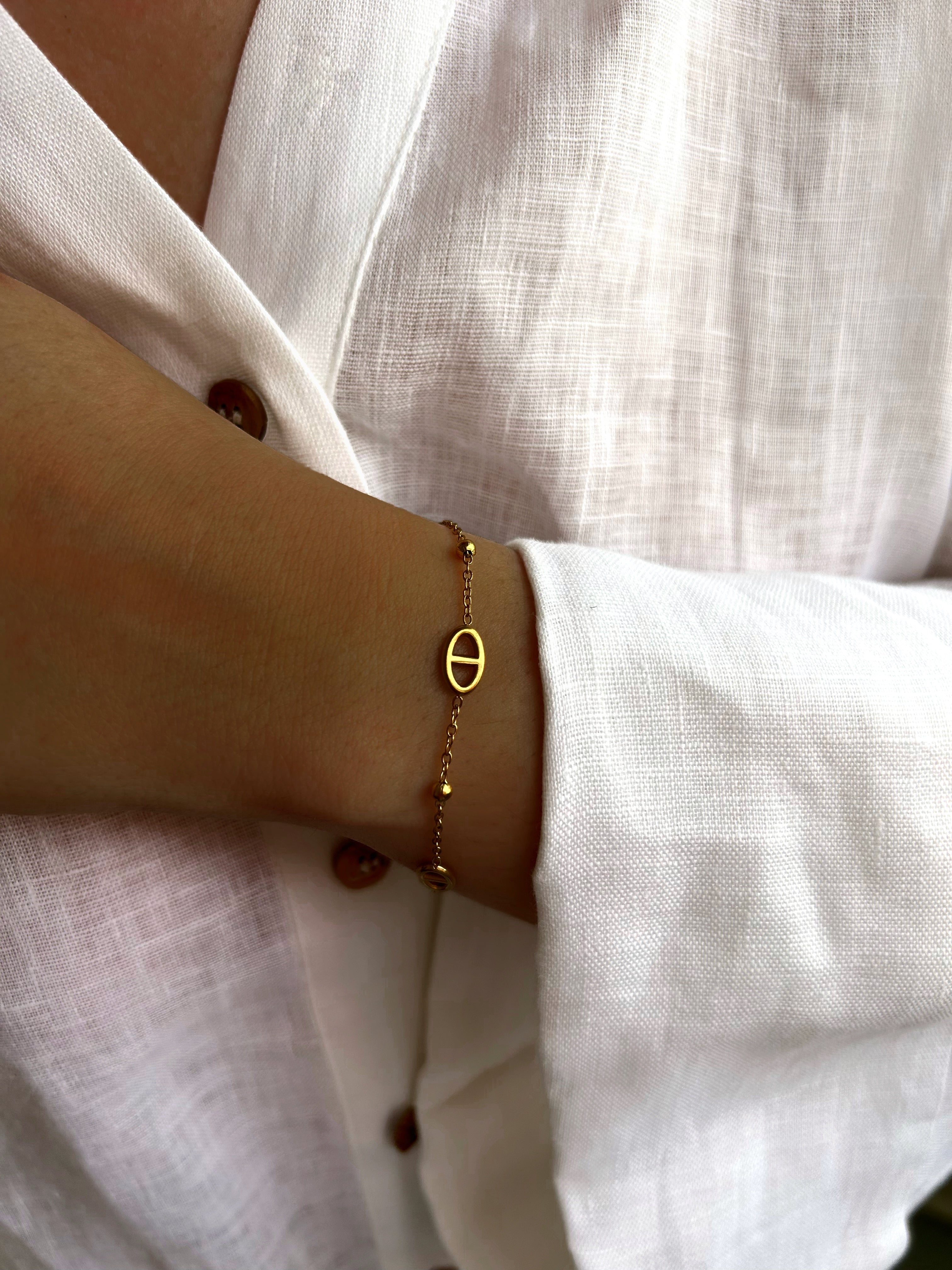 Adjustable fine chain bracelet decorated with a marine mesh pendant and rhinestones.