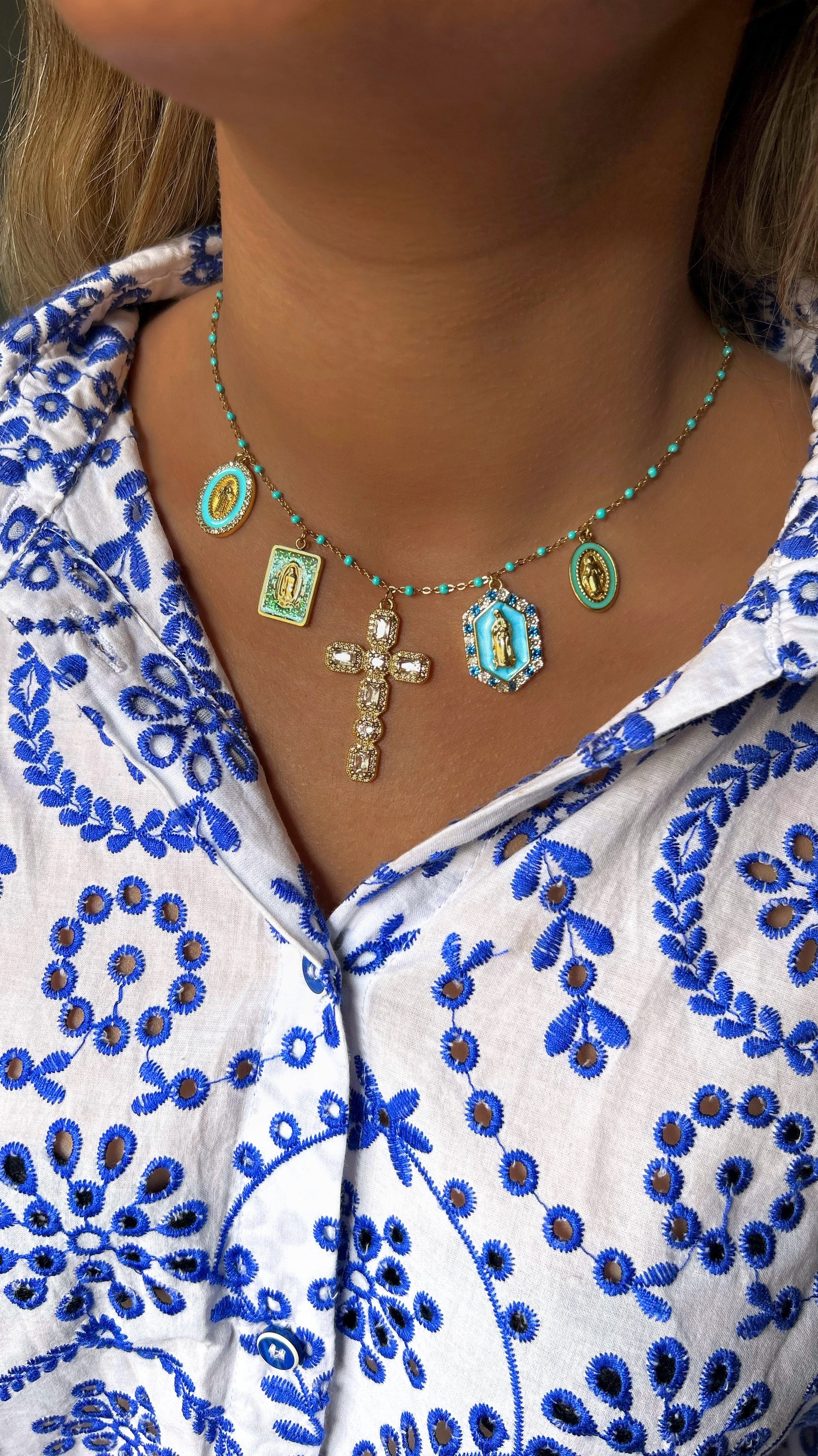 Collar ajustable con finas cuentas de turquesa, compuesto por 5 charms de la colección Croyance.
