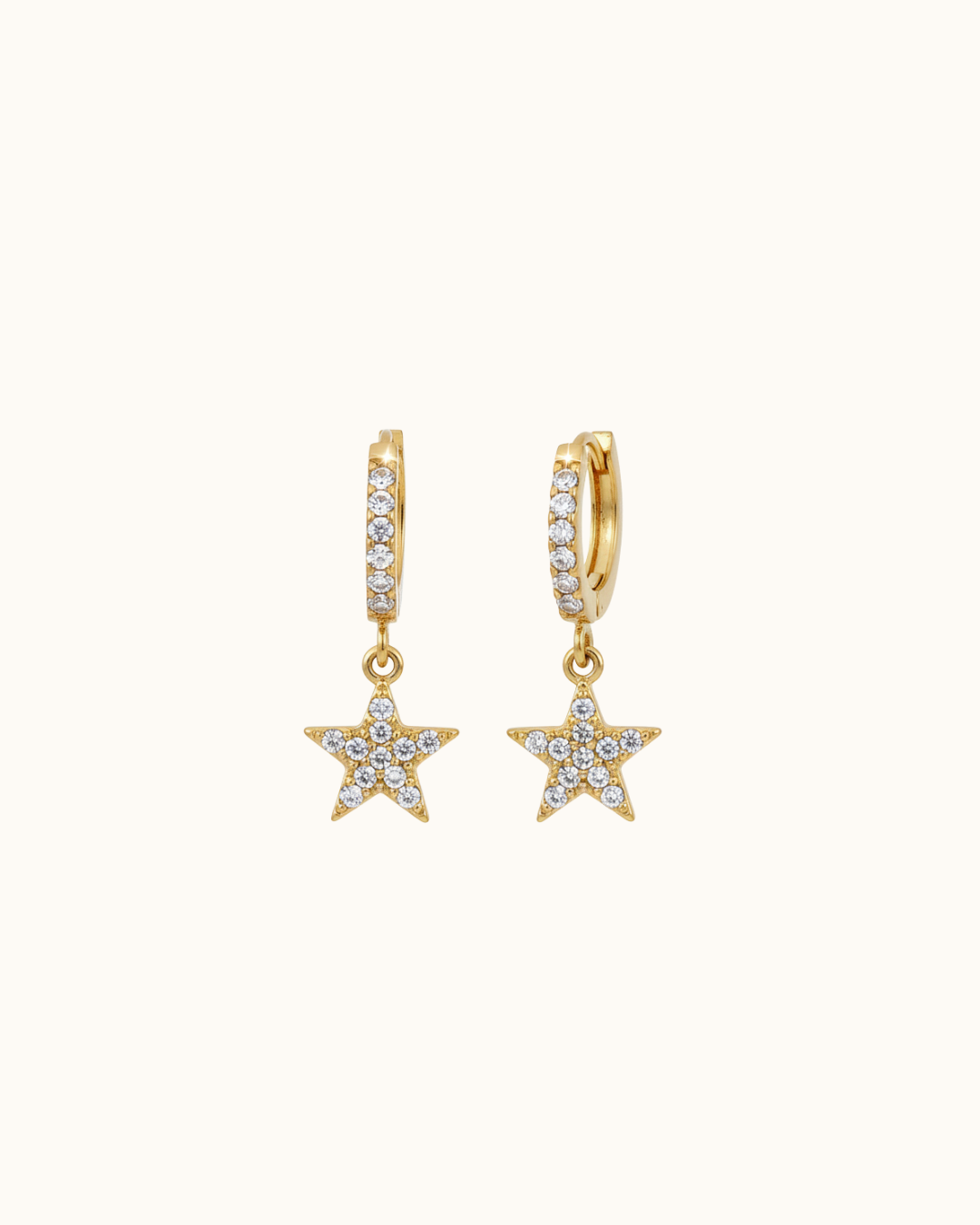 Petites boucles d'oreilles ornées de strass avec un pendentif étoile en strass.