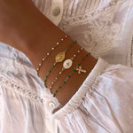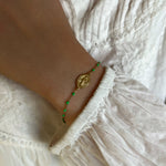 Pulsera ajustable con finas cuentas de colores y colgante de Virgo.