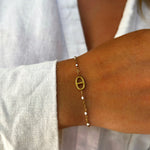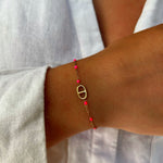 Bracelet à fines perles colorées ajustable avec un pendentif Maille marine.